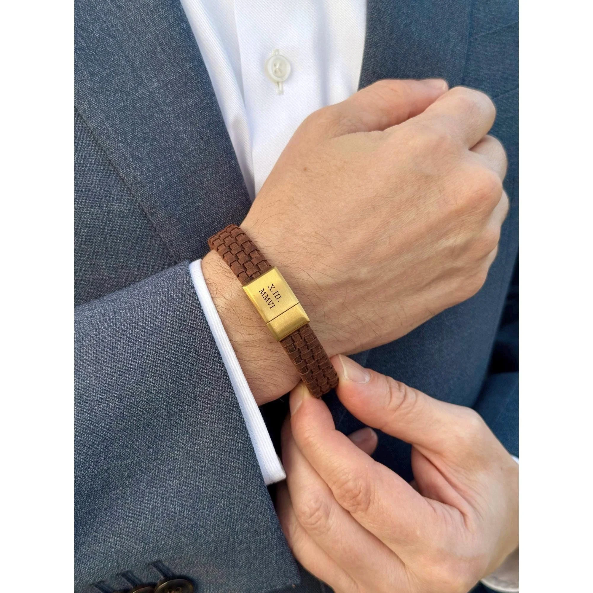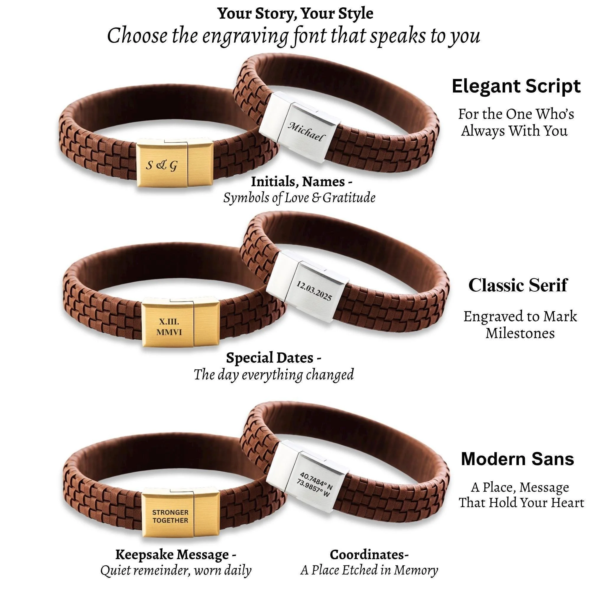 Personalized Braided Leather Bracelet for Men: Laser Engraved Stainless Steel Clasp